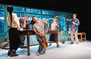 En medio de una escenografía que evoca una sala de clases, se desencadena un